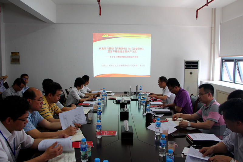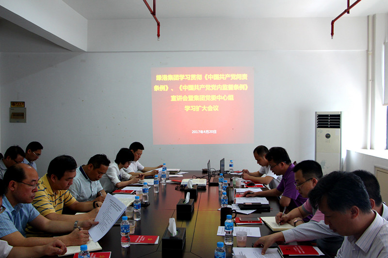 為進(jìn)一步加強(qiáng)廉政文化建設(shè),不斷提高黨員干部廉潔從業(yè)意識(shí),推進(jìn)廉潔從業(yè)教育工作,以黨風(fēng)廉潔建設(shè)新成效促進(jìn)綠港集團(tuán)健康發(fā)展,4月20日上午,綠港集團(tuán)黨委召開(kāi)學(xué)習(xí)貫徹《中國(guó)共產(chǎn)黨問(wèn)責(zé)條例》和《中國(guó)共產(chǎn)黨黨內(nèi)監(jiān)督條例》(以下簡(jiǎn)稱“兩部條例”)宣講報(bào)告會(huì)暨中心組學(xué)習(xí)擴(kuò)大會(huì)議,會(huì)議由綠港集團(tuán)黨組書(shū)記、董事長(zhǎng)楊東主持,經(jīng)開(kāi)區(qū)紀(jì)工委派駐國(guó)有公司紀(jì)檢組組長(zhǎng)李云岳就“兩部條例”進(jìn)行了宣講,綠港集團(tuán)全體班子成員、集團(tuán)本部中層以上管理人員、子公司領(lǐng)導(dǎo)班子約50人參加會(huì)議。