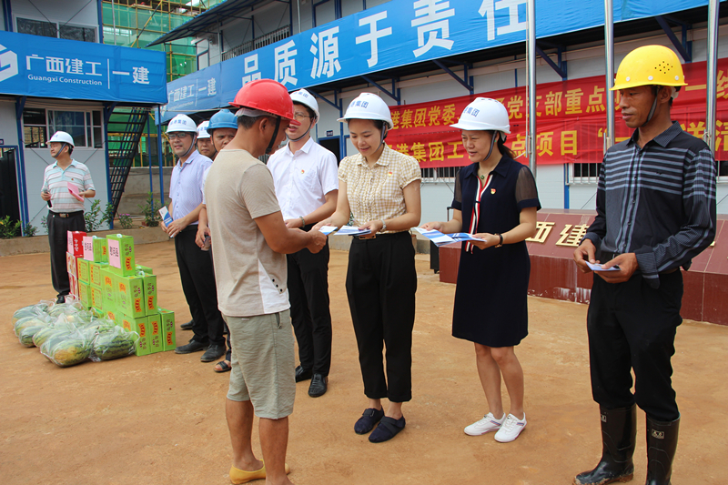驕陽似火,酷暑難當(dāng)。隨著聒噪的蟬鳴,又迎來了今年的高溫季節(jié),為做好防暑降溫工作,保障重點(diǎn)工程和重點(diǎn)項(xiàng)目一線員工和項(xiàng)目建設(shè)者的健康權(quán)益,綠港集團(tuán)黨委和工會(huì)在7月4日分別來到綠港·云海灣、吳圩3號(hào)路、金凱工業(yè)園等9個(gè)重點(diǎn)項(xiàng)目和重點(diǎn)工程現(xiàn)場(chǎng),為奮戰(zhàn)在一線的職工和項(xiàng)目建設(shè)者們送去了絲絲涼意,獻(xiàn)上了一份誠(chéng)摯的關(guān)懷。