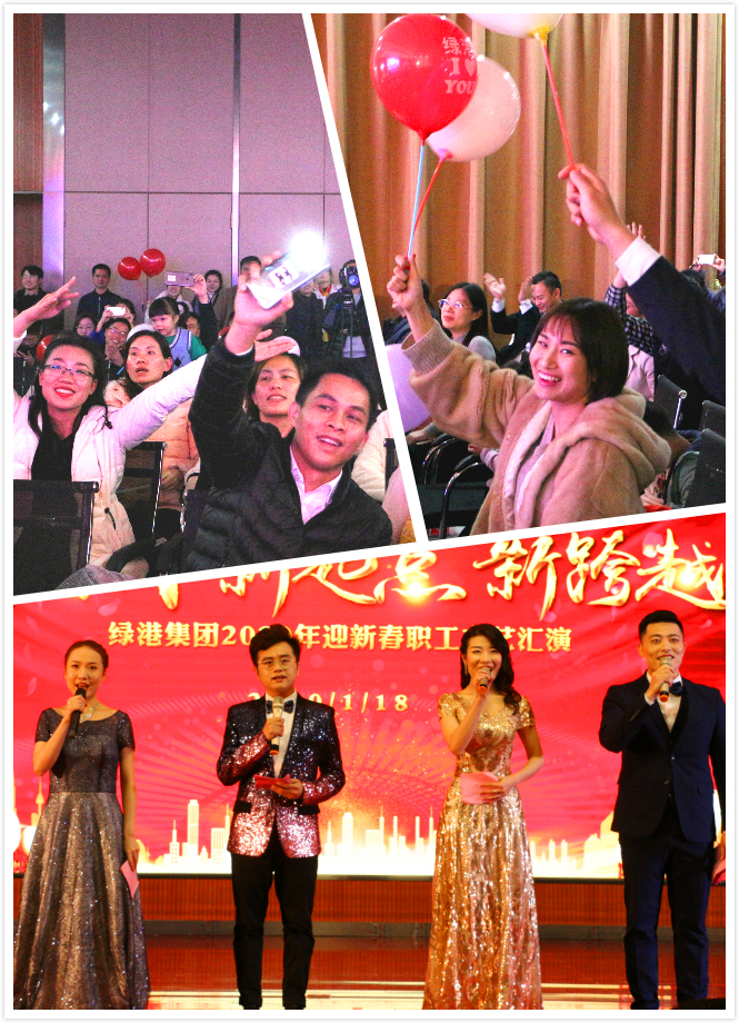 隨后,集團總部喜慶歡騰的舞劇《鼠舞龍騰鬧新春》拉開了綠港集團2020年職工文藝匯演的序幕,集團領(lǐng)導(dǎo)班子,集團各部門、各子公司干部員工接連登場,以17個內(nèi)容豐富、積極向上的文藝節(jié)目同賀新春。通過舞蹈、音樂情景劇、歌曲、小品、詩朗誦、文化展示等形式,充分展現(xiàn)綠港鐵軍勇于拼博、團結(jié)奮進的風(fēng)采和廣大職工團結(jié)上進的精神風(fēng)貌?!毒G港建設(shè)者》以鏗鏘有力的舞蹈,表現(xiàn)出奮戰(zhàn)在經(jīng)開區(qū)建設(shè)一線的綠港人攻難克艱的決心和擔(dān)當?shù)臍馄?;科巨公司帶來的《大話西游之治理黑臭水體》則講述了綠港鐵軍在打贏黑臭水體攻堅戰(zhàn)中,挺身而出,爭做攻堅排頭兵的故事;集團營銷管理中心的歌曲串燒、科巨公司《 We Will Rock You》、嘉通公司《上海灘》和榮鑫公司的《榮鑫似首歌》不僅讓我們一睹國風(fēng)、爵士風(fēng)、上海灘和懷舊港風(fēng)的風(fēng)采,一句“綠港飛得更高”的高歌更是把全場氣氛帶到了最高點!舞蹈《芒種》、《橋邊姑娘》和萬方公司《溜溜的山寨溜溜的醉》是柔情萬種,百轉(zhuǎn)千回;小品《你有沒有在乎過我的感受》、《家有兒女》取材日常生活,表達了家和百事興的主題;九略公司《中華攢 瑰寶情》通過對中華傳統(tǒng)文化的展示,激發(fā)了廣大職工的文化自信;集團辦公室、中港興公司聯(lián)合準備的節(jié)目《我們是一家人》通過手語舞蹈表現(xiàn)出集團公司團結(jié)一心,同事間真誠有愛的良好面貌,讓大家沉浸在一片愛的海洋之中;嘉通公司的朗誦《青春萬歲》則透過稚嫩的童聲帶大家重返美好的青蔥歲月。各節(jié)目精彩紛呈,引得臺下觀眾呼聲連連。最后,節(jié)目表演在集團公司領(lǐng)導(dǎo)班子帶來歡樂活潑的舞蹈《愛》中告一段落,現(xiàn)場四處洋溢著歡樂祥和的氣氛。