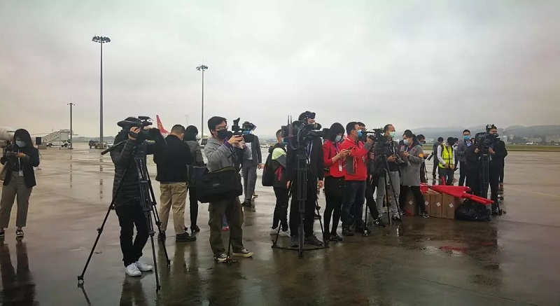 媒體早早到來南寧吳圩機(jī)場(chǎng),靜候英雄凱旋。