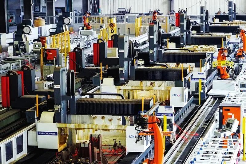 南南鋁業(yè)的自動化加工中心內(nèi),機(jī)器人正在加工鋁合金型材。 記者葉子榕攝
